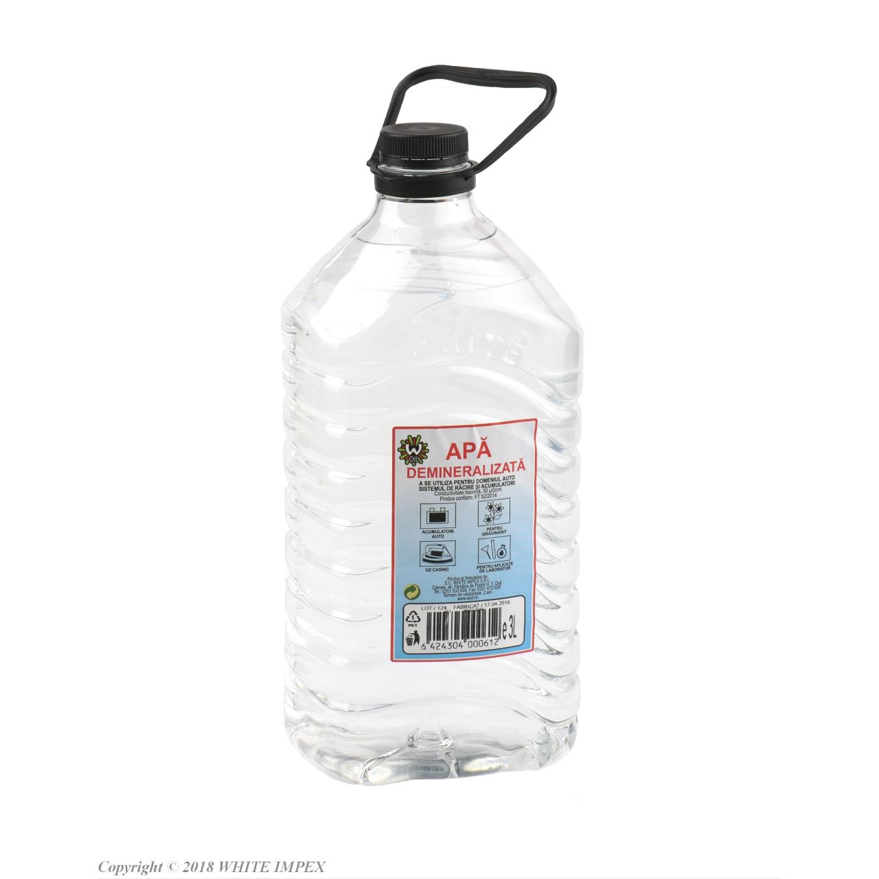 Apă demineralizată 3L Apă pură obținută prin osmoză inversă și deionizare, fără săruri minerale și impurități.