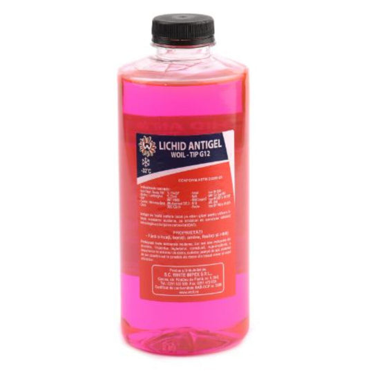 No reviewsAntigel concentrat WOIL Roz G12+ 1L Antigel de lungă durată tip G12+/G12++, pe bază de etilenglicol, culoare roz. Caracteristici principale: Protecție până la -68°C (diluție 50/50 cu apă demineralizată) Compatibil cu G12, G12+, G12++, G13 Fără...Regular price 15,00 leiRegular price 15,00 lei -