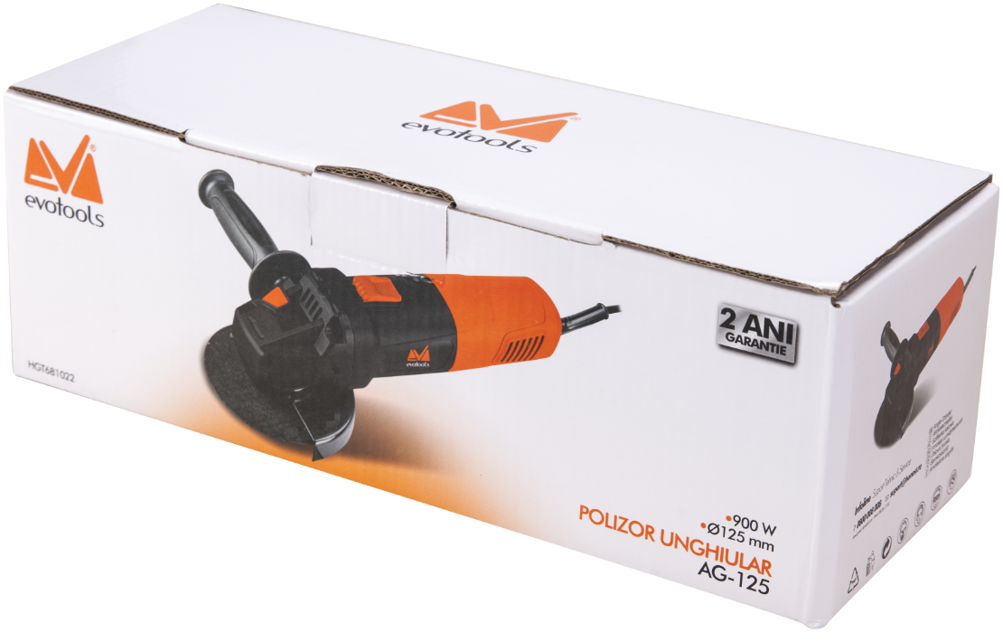 Alege polizorul unghiular EvoTools AG125 900W pentru siguranță avansată, putere ridicată și performanță constantă în orice proiect de tăiere și șlefuire.